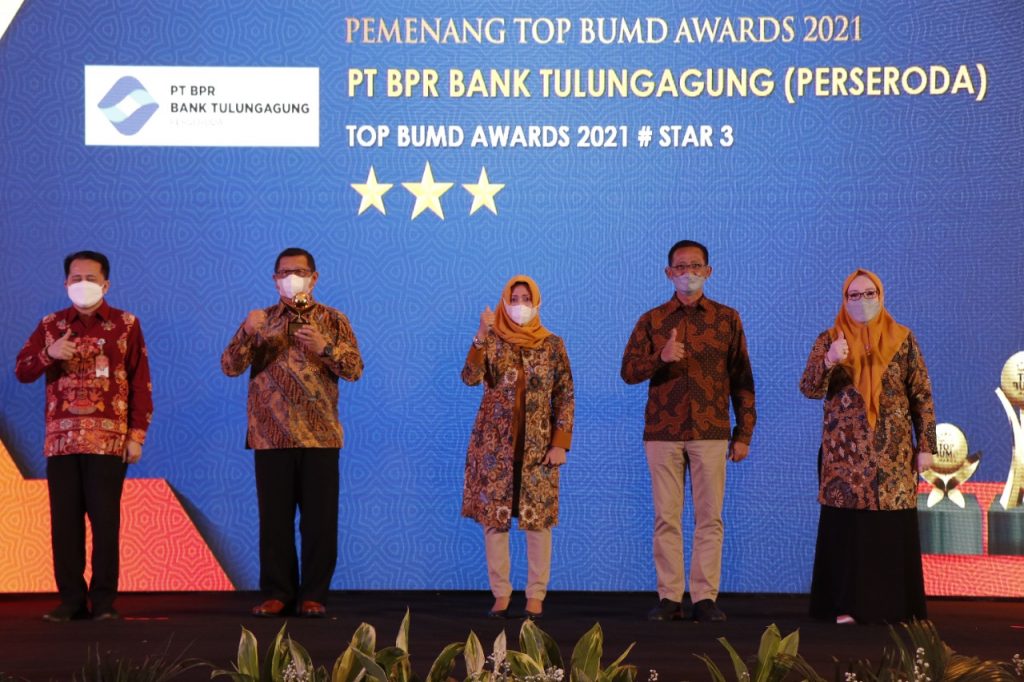 PT. BPR BANK TULUNGAGUNG (Perseroda) dalam kesempatan ini mendapatkan #BPR_Bintang 3 dengan capaian yang luar biasa di kala pandemi ini sedang berlangsung. Selanjutnya, BUMD sektor keuangan, terutama BPD dan BPR, terkena dampak yang sangat besar. Namun, berkat inovasi dan prinsip kehati-hatian dalam menjalankan bisnisnya, maka BPD dan BPR-BPR kita, masih mampu menjaga kinerja dan layanannya dengan baik.